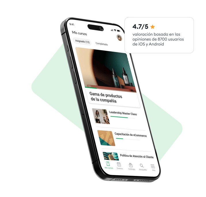Con la herramienta para crear cursos interactivos online de iSpring Learn, los empleados pueden acceder a la formación desde cualquier dispositivo. Gracias a su app, podrán seguir sus cursos tanto online como offline, ya sea en un avión, en lugares sin conexión a Internet o entre reuniones importantes.»