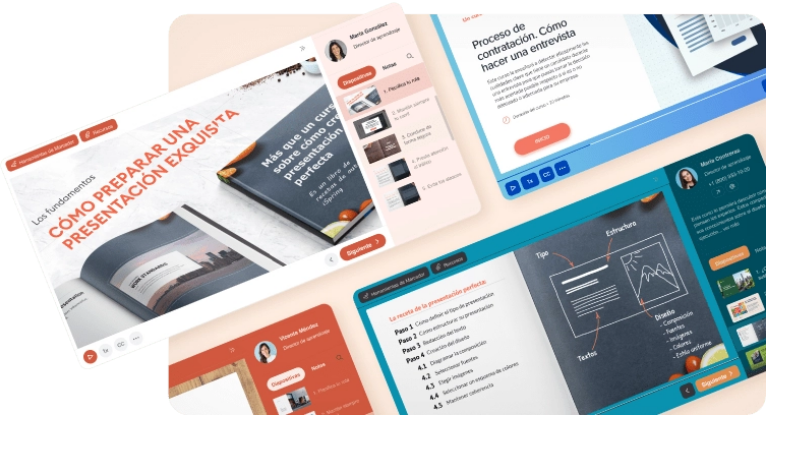 Ahorra tiempo, esfuerzo y dinero. Crea cursos interactivos, evaluaciones, tutoriales en video y simulaciones de conversación con una sola herramienta.